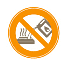 There are various safety markings etched on the top face of the ethanol burner to remind users never to fill the burner while hot, or in operation.