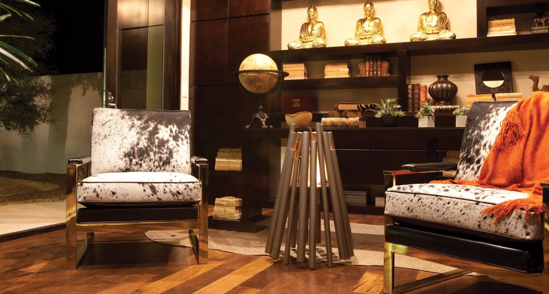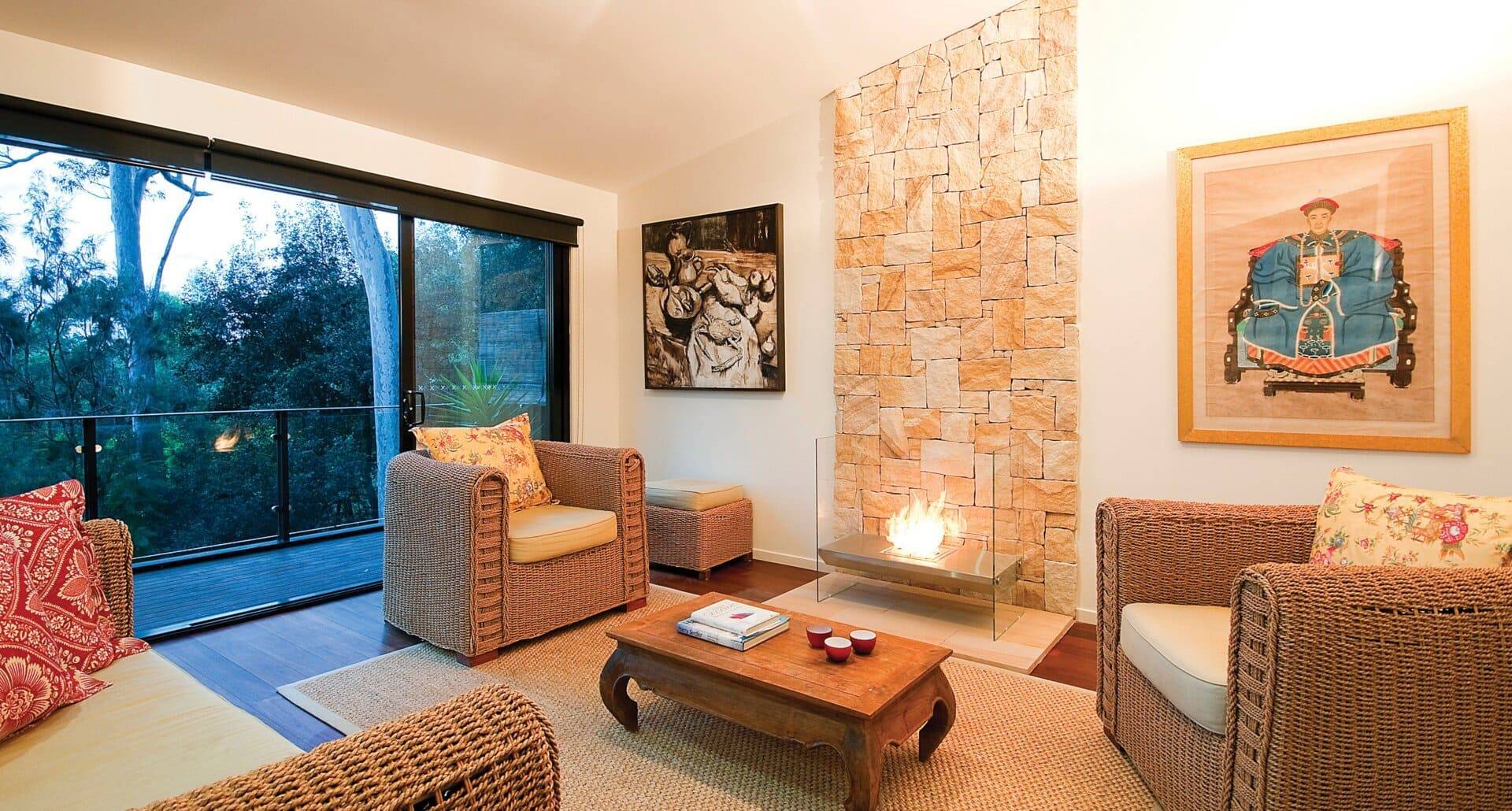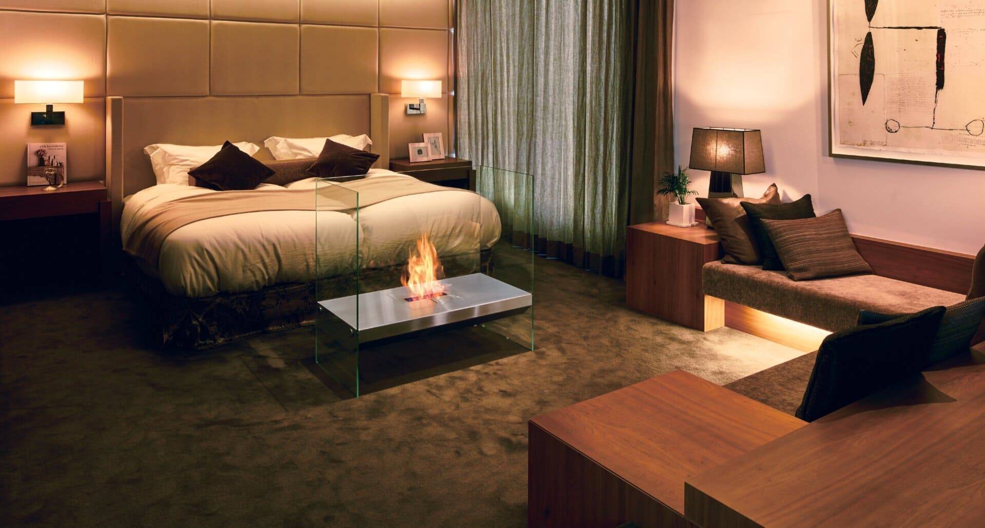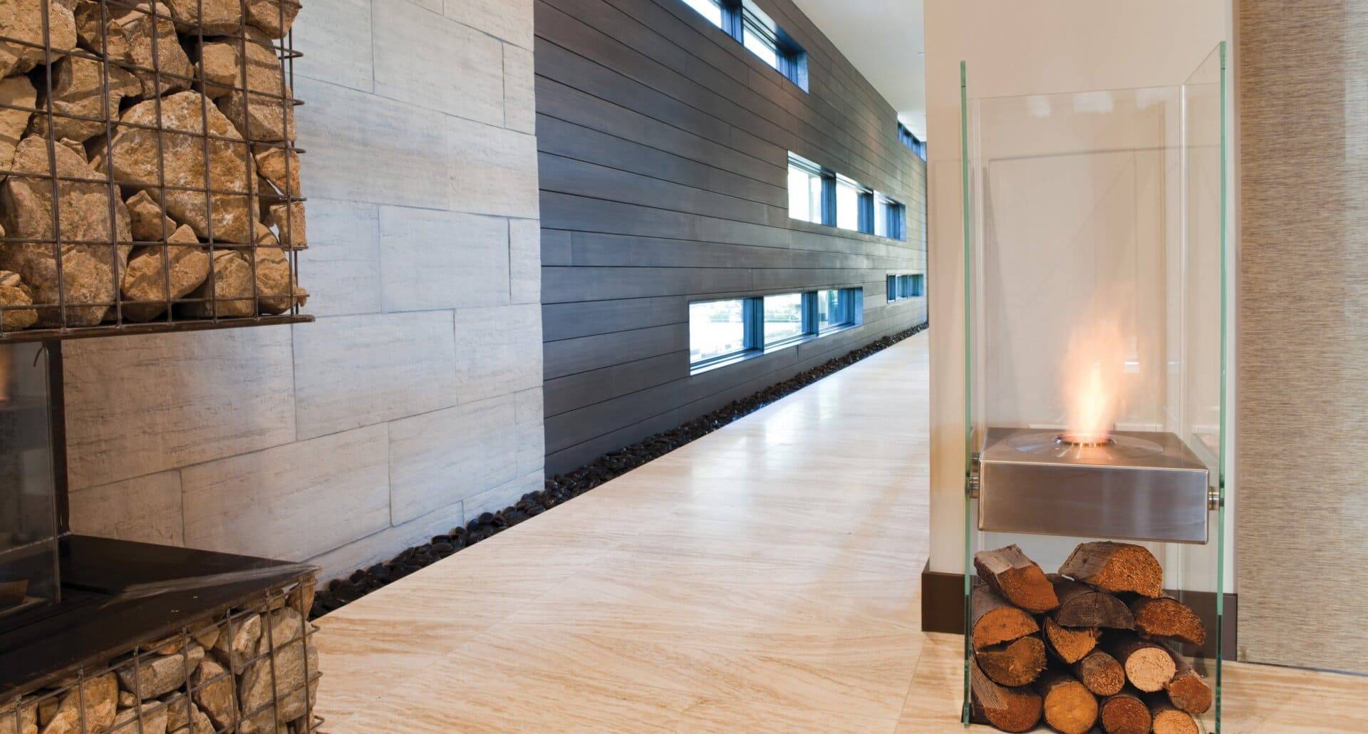 See-through open fires provide a distinctive design element and enhance the feeling of space.