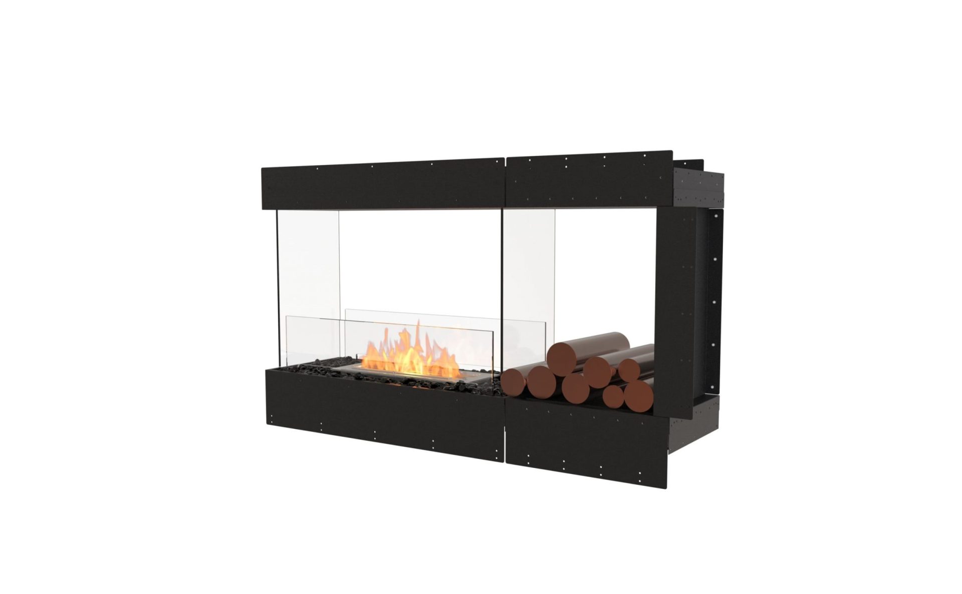 FLEX Corner Fireplaces - open on 2 sides. to the front & one side