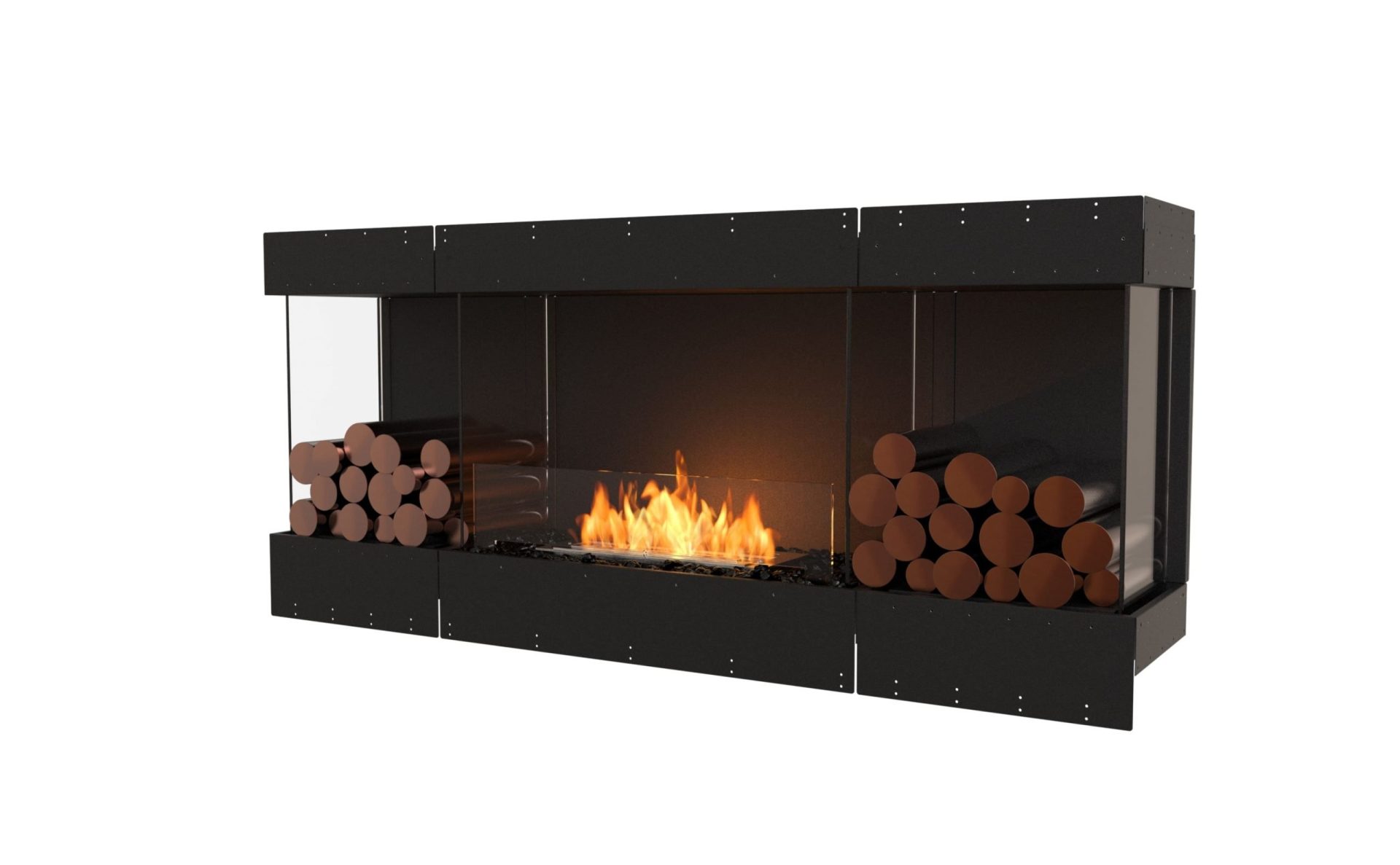 FLEX Bay Fireplaces - open on 3 sides. to the front & both sides