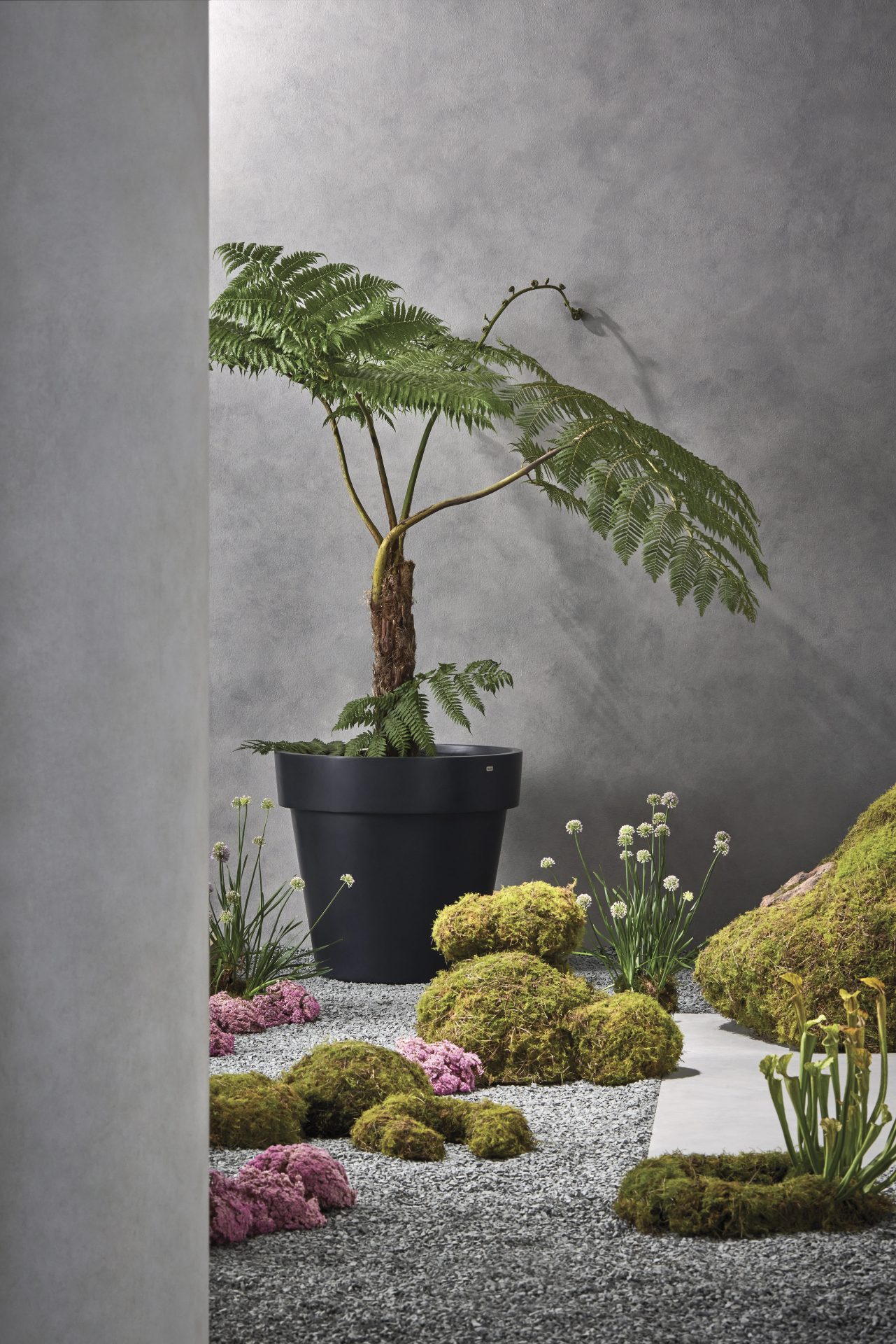 Sculptural shape combines with an ultra-smooth surface thanks to a ‘sprayed on’ technique, with a visually ‘thick lip’ around the pot in the traditional flowerpot style. The contemporary finish is further enhanced by three natural hues: Graphite, Natural, and Bone.