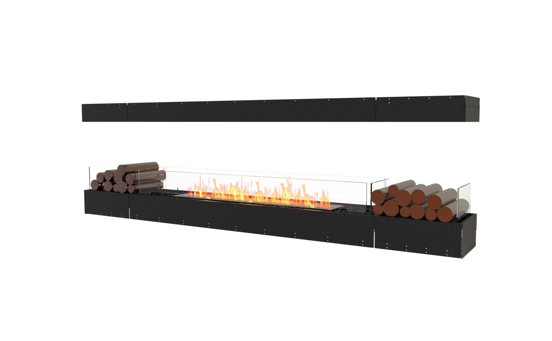 The Flex 104IL.BX2 includes a design that features Decorative Boxes on either side of the firebox. This 2 Box-design boasts an attractive visual symmetry while the glass panels that divide the Decorative Boxes and the Firebox create an uninterrupted, streamlined look.