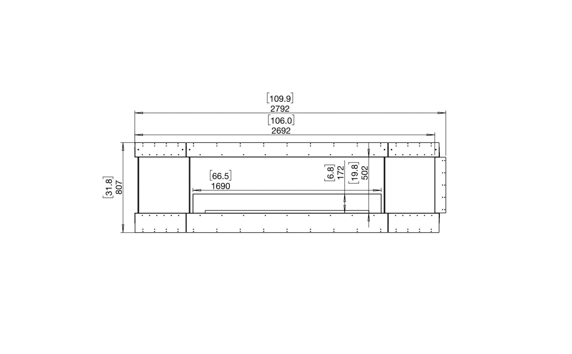 The Flex 104PN.BX2 includes a design that features Decorative Boxes on either side of the firebox. This 2 Box-design boasts an attractive visual symmetry while the glass panels that divide the Decorative Boxes and the Firebox create an uninterrupted, streamlined look.