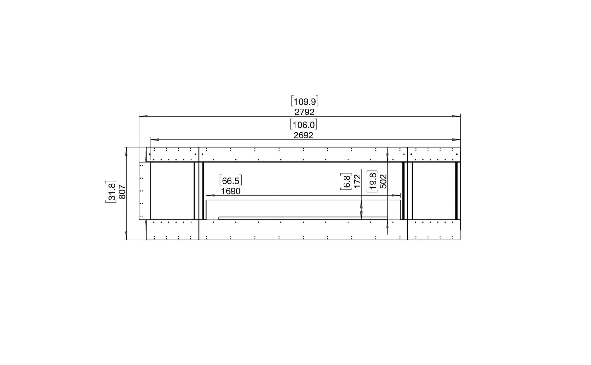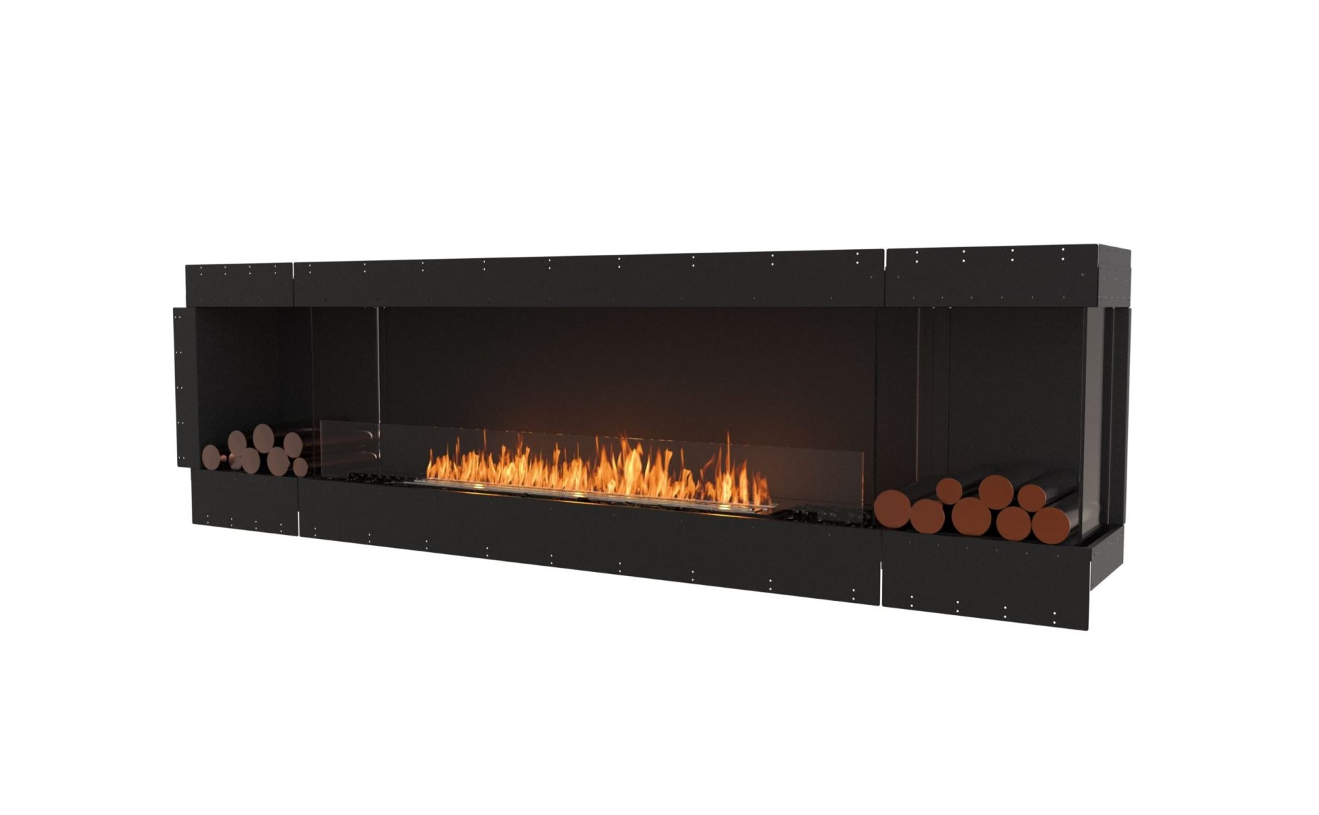 The Flex 104RC.BX2 includes a design that features Decorative Boxes on either side of the firebox. This 2 Box-design boasts an attractive visual symmetry while the glass panels that divide the Decorative Boxes and the Firebox create an uninterrupted, streamlined look.