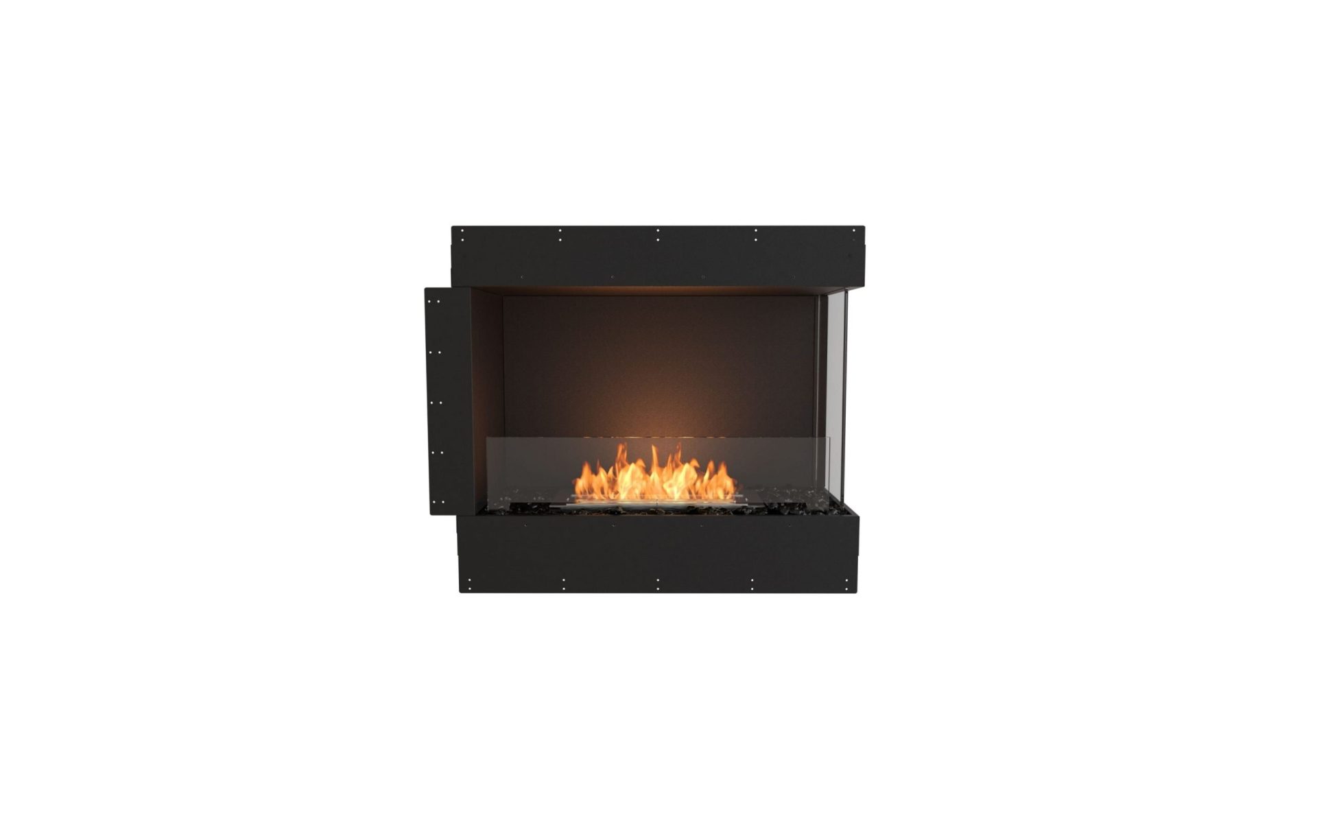 Designed for single room installation, the Right Corner Fireplace Insert features two open sides. The transparent glass on the right corner enables the flame to be viewed from the front and the right corner, providing interior designers, homeowners, architects and builders with the freedom to customise their fire solution to suit a floor plan.