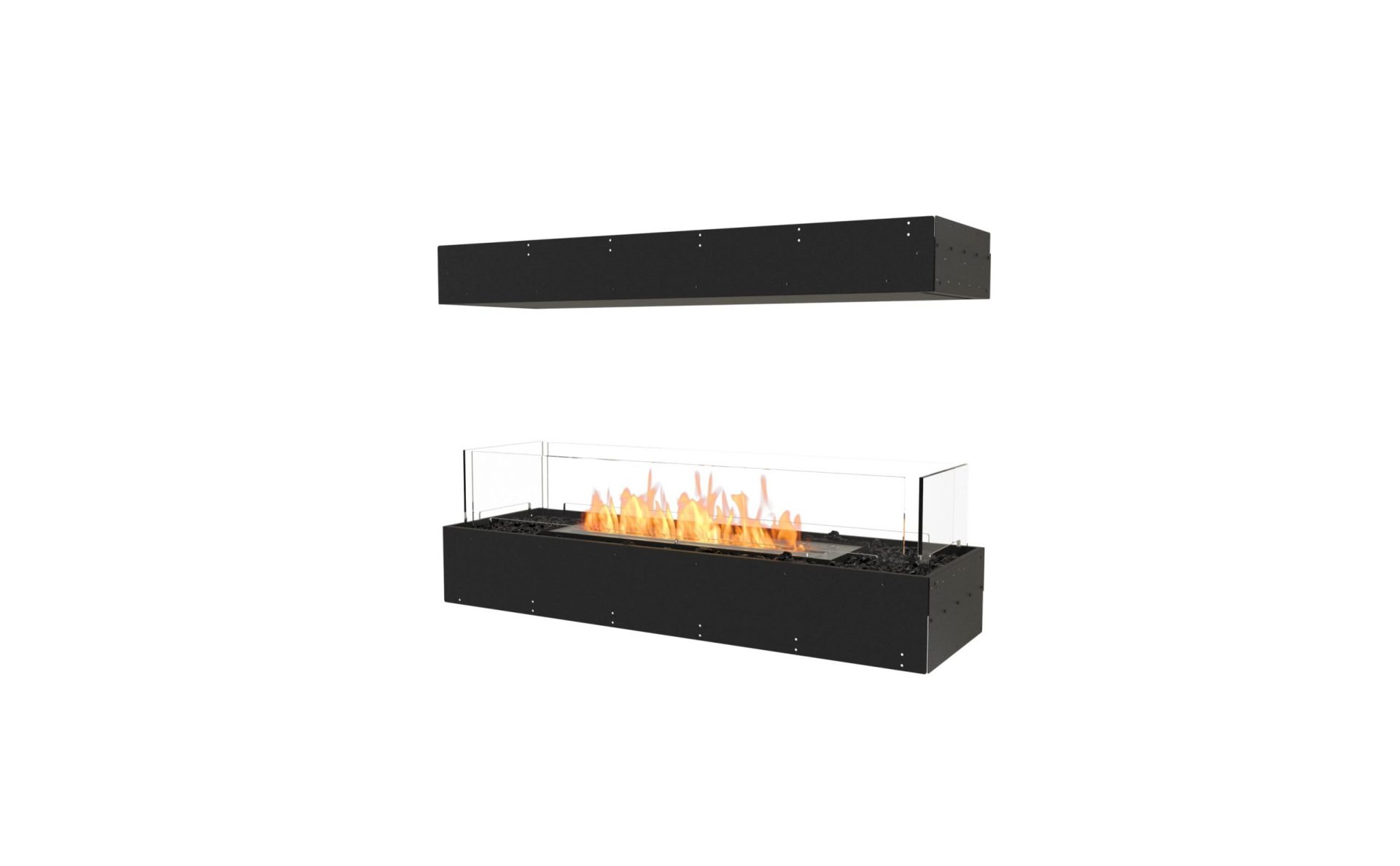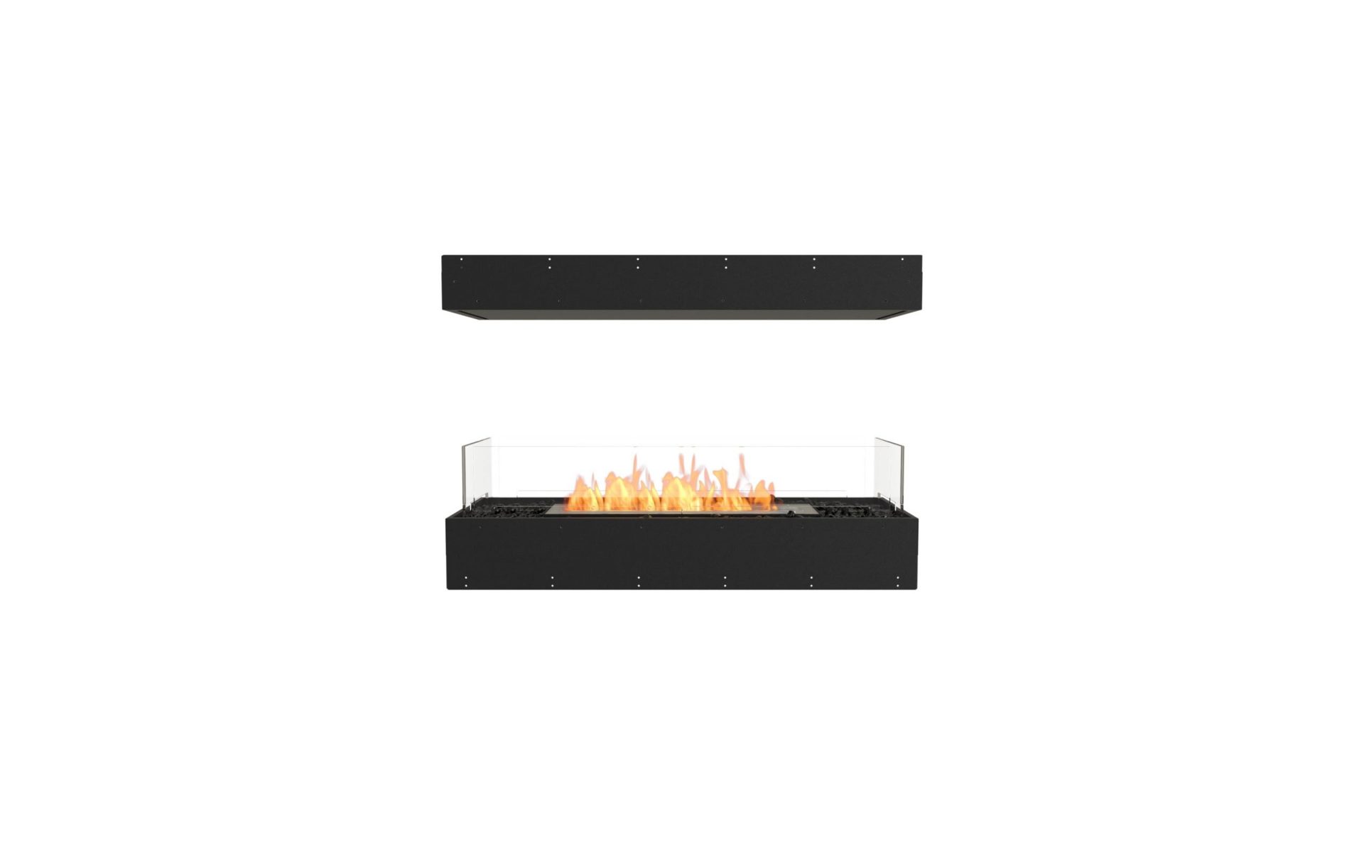 The zero-clearance Flex Island fireplace insert is designed as a room divider, with four open sides enabling the hypnotic flame to be viewed from the front, back, left and right sides. The UL Listed Flex Island models come with a base component that holds the burner and a top component that lines the bulkhead above.