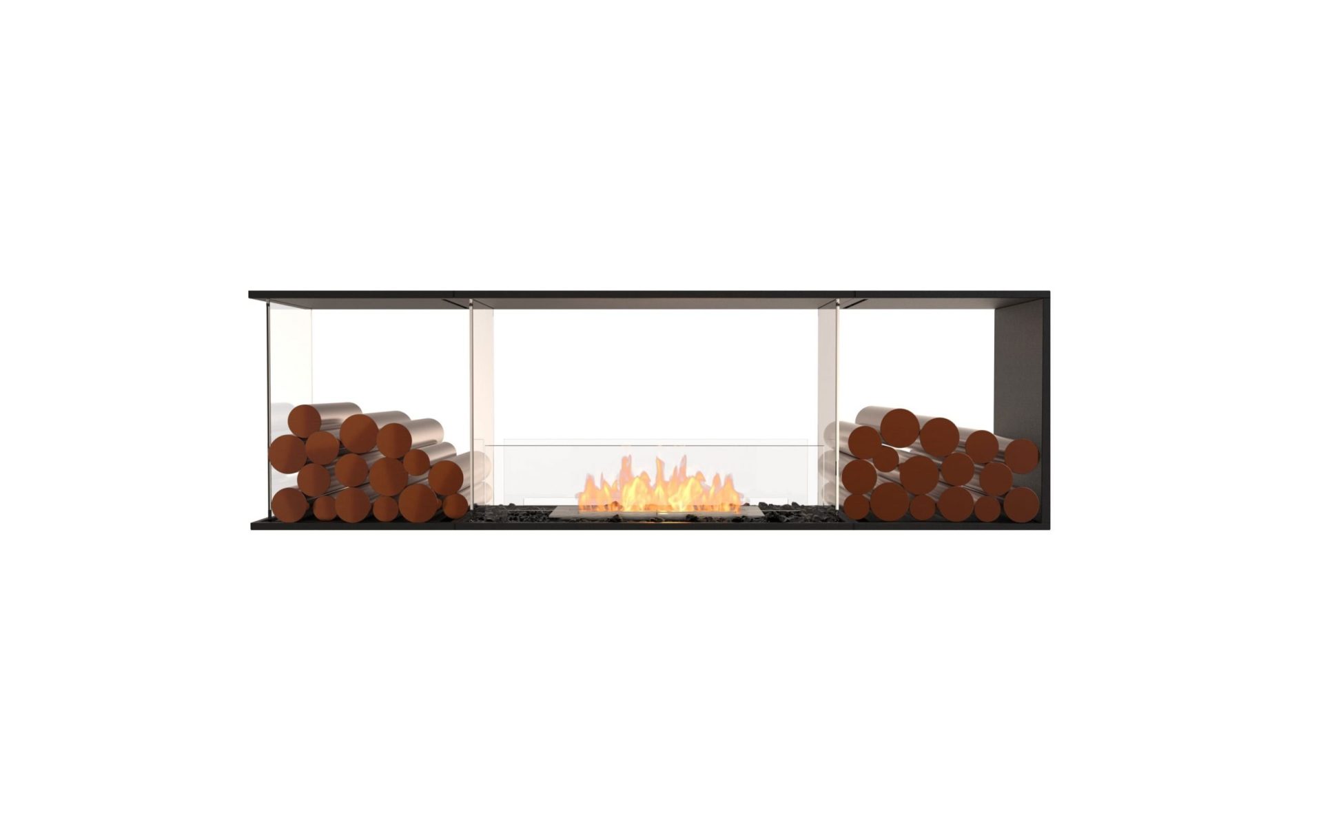 Designed as a room divider, the Peninsula Fireplace Insert features three open sides, enabling the mesmerising flame to be viewed from any direction - the front, back and open side.