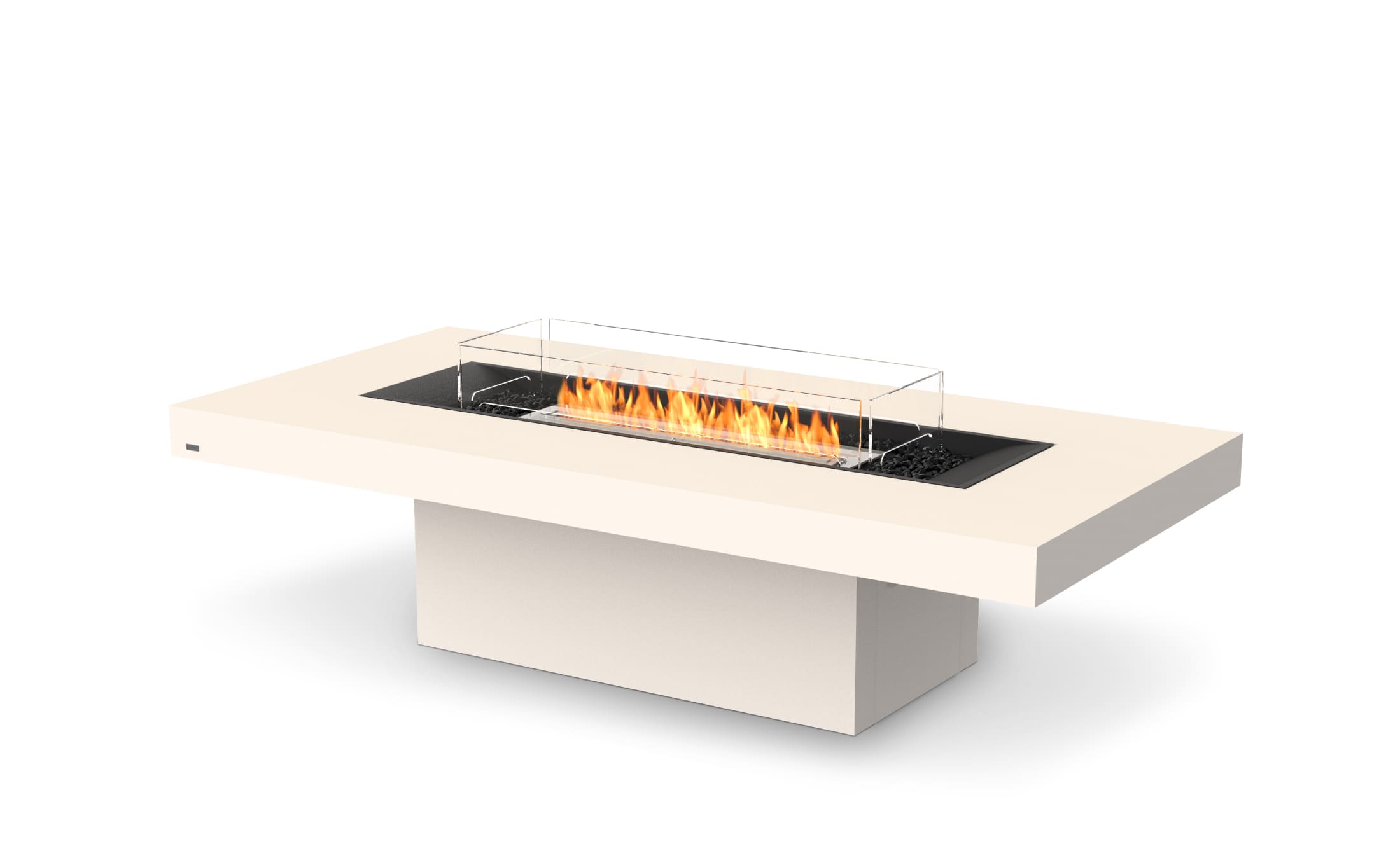 Elegant in design and practical in shape, the Gin 90 Chat table boasts a see-through, toughened glass screen that enhances the flame and provides peace of mind.